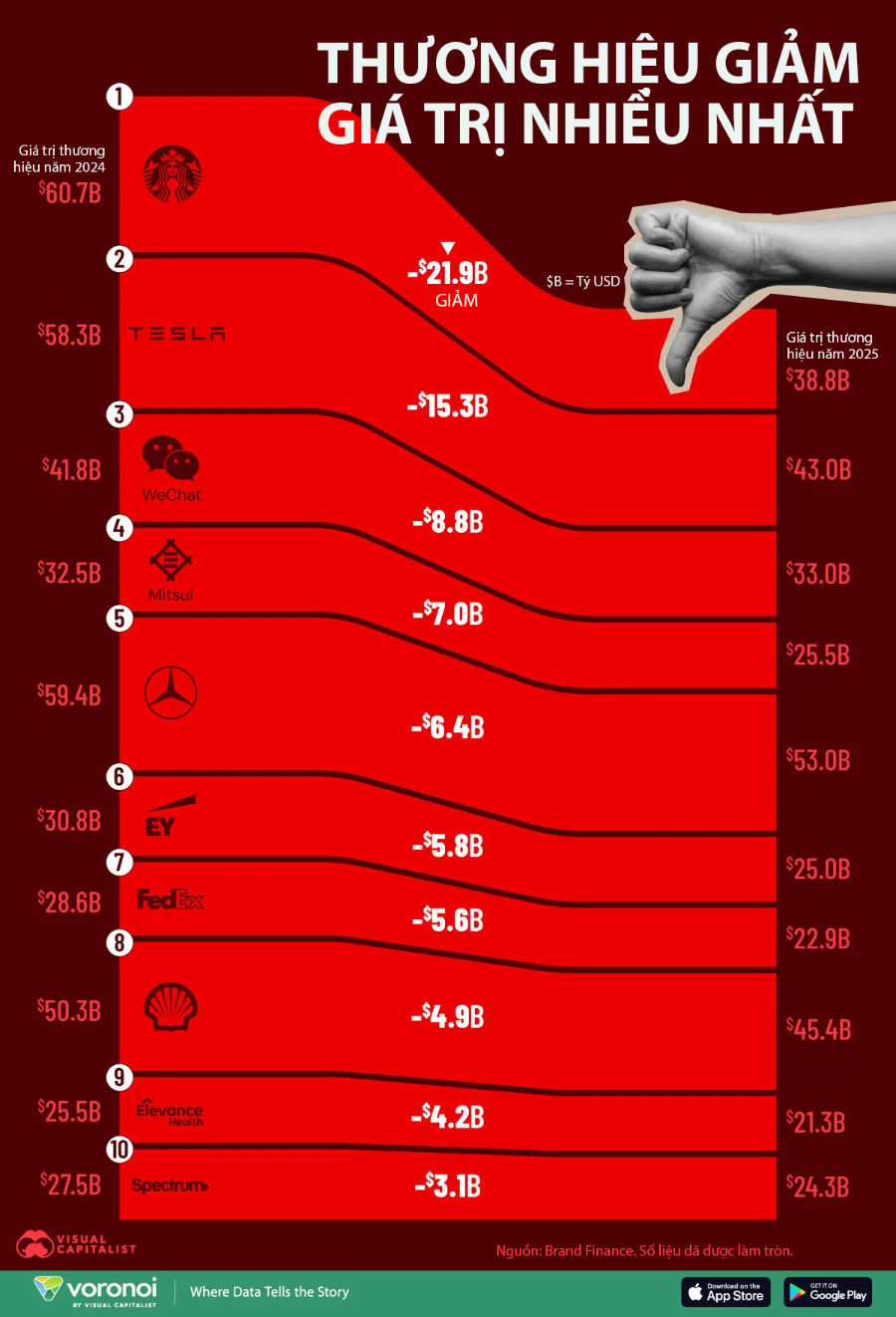 Những thương hiệu mất giá trị nhiều nhất năm 2025, Starbucks dẫn đầu