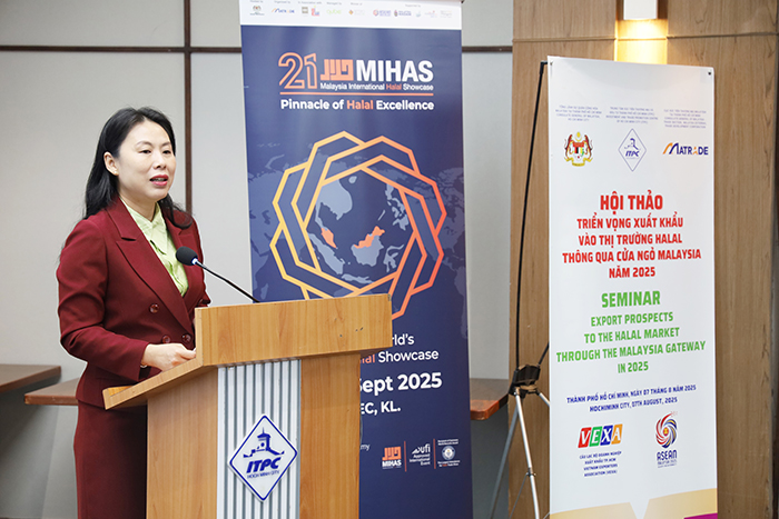 Sáng ngày 07/8/2025, Trung tâm Xúc tiến Thương mại và Đầu tư Thành phố (ITPC) phối hợp với Tổng Lãnh sự quán Malaysia tại Thành phố Hồ Chí Minh và Cục Xúc tiến Thương mại Malaysia tại Thành phố Hồ Chí Minh (MATRADE) tổ chức Hội thảo “Triển vọng xuất khẩu vào thị trường Halal thông qua cửa ngõ Malaysia năm 2025”.