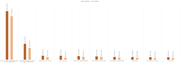 Nổi bật, nhóm nguyên liệu và khoáng sản trong kỳ 1 tháng 4/2026 ghi nhận mức tăng trưởng đột biến, trở thành một trong những yếu tố quan trọng thúc đẩy kim ngạch xuất khẩu chung.